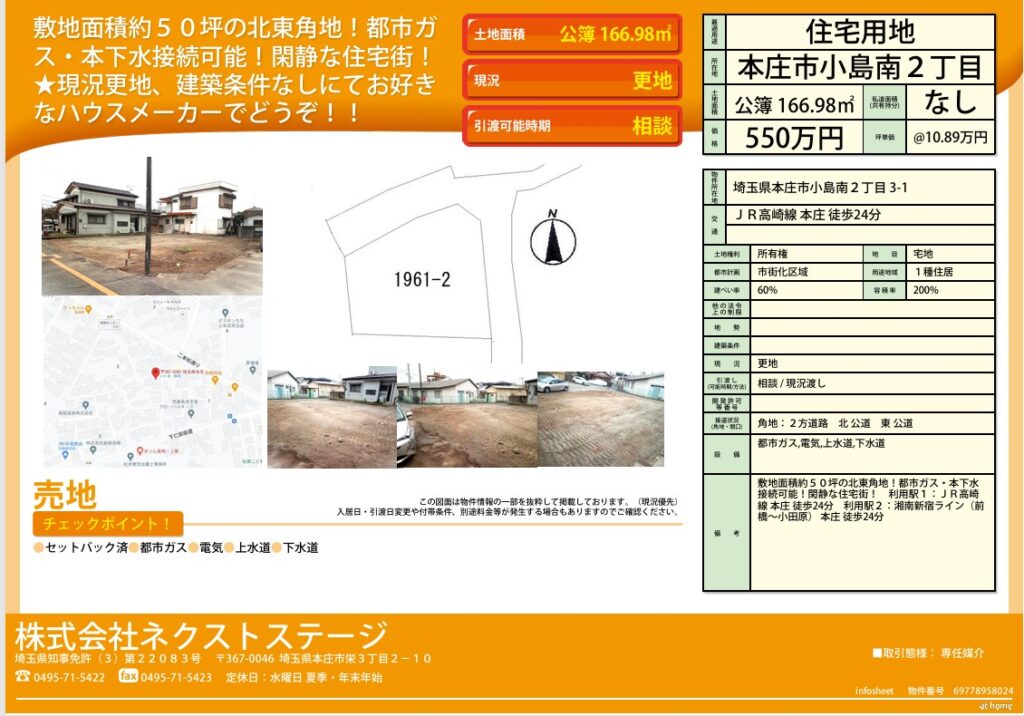 所在地 埼玉県本庄市小島南2丁目3-1  小島南2丁目 売地
